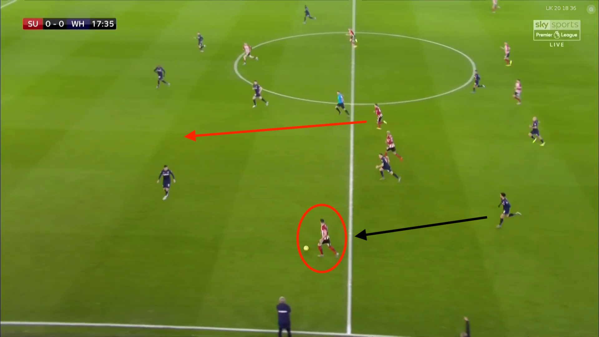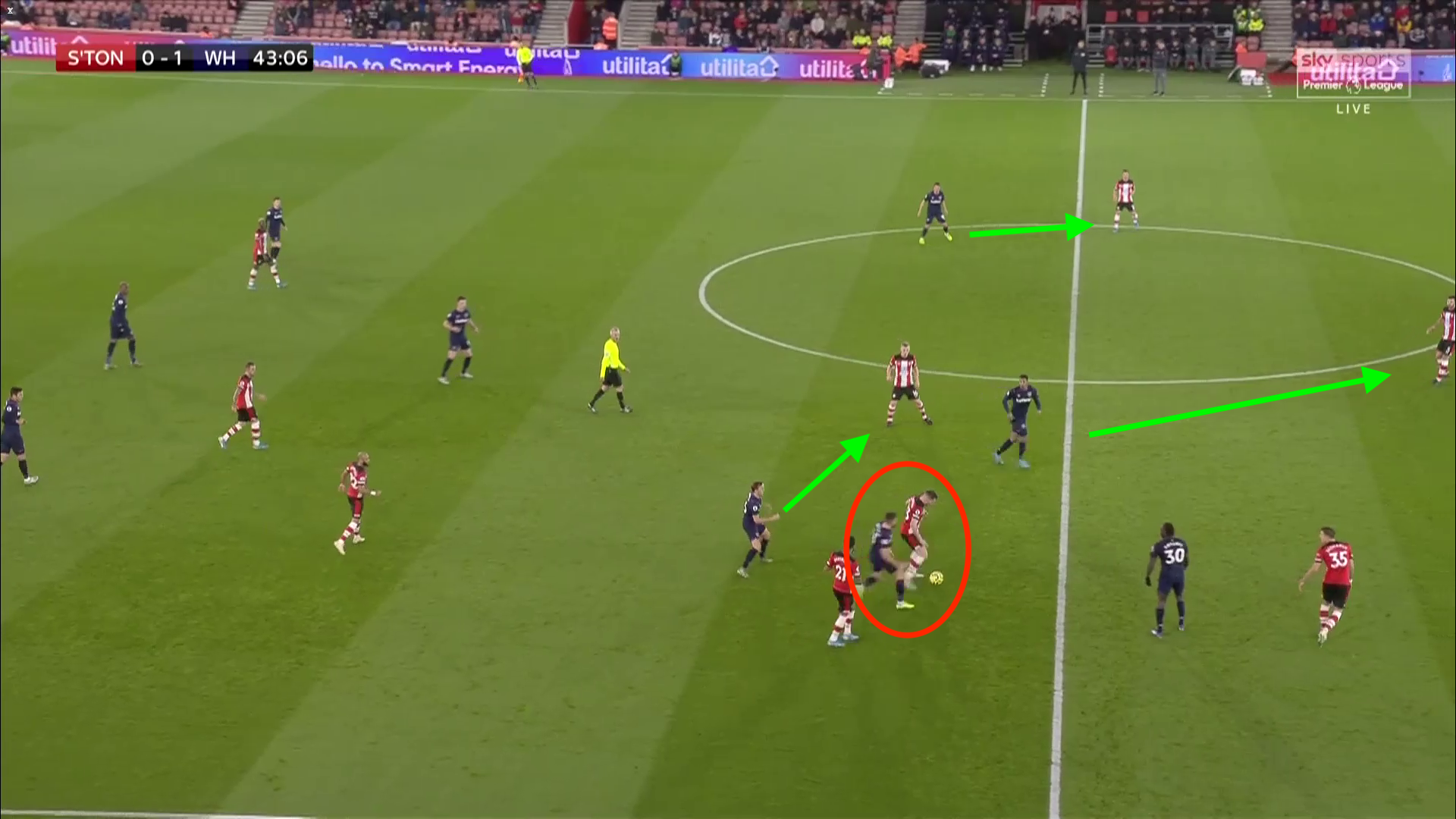 In the left hand image Sheffield United are building the attack from the right with Anderson looking to engage quickly & help out his full back. Anderson comes into contact with the wing back for Sheffield United & stretches out a leg to try & nick the ball off his opponent. Unfortunately, the wing back anticipates & pushes the ball slightly further ahead to win the foul. Had Anderson waited to engage this could have allowed Fredericks time to engage. In this sequence there was danger with a Sheffield United player running into the channel vacated by the right back & the foul stopped the attack in a non threatening area of the pitch. In the right hand image the Southampton midfielder is shielding the ball & under pressure with West Ham providing good cover ensuring all passing options are limited. Snodgrass rather than hold position engages aggressively being easily turned & ultimately fouls the player. Had he jostled into position West Ham players where ideally placed to pressure the midfielder in a 2 on 1 & initiate any of the passing options.